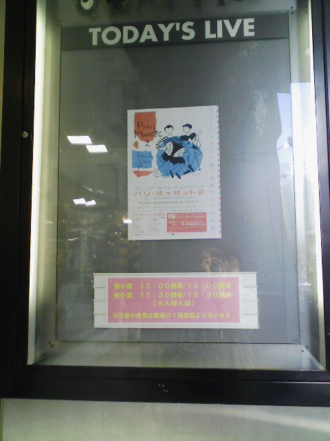 ライブ会場ではカメラも禁止なので、会場の入り口に貼ってあったポスターだけ撮って帰りました。